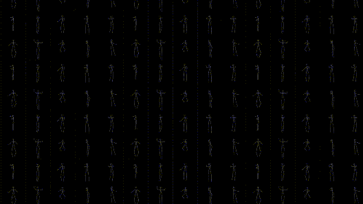 这总共产生了30个潜在的编排序列,目前持续时间约10秒,并使用类似的"骨架" 视觉显示在计算机屏幕上,McGregor会选择他想用哪一个序列。Henry说:“接下来,无论舞蹈演员跳什么,都可以再次录制,重新输入机器。”