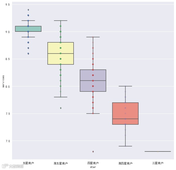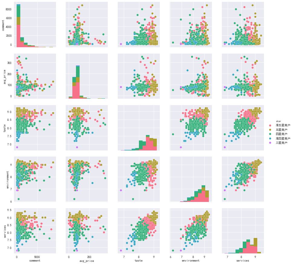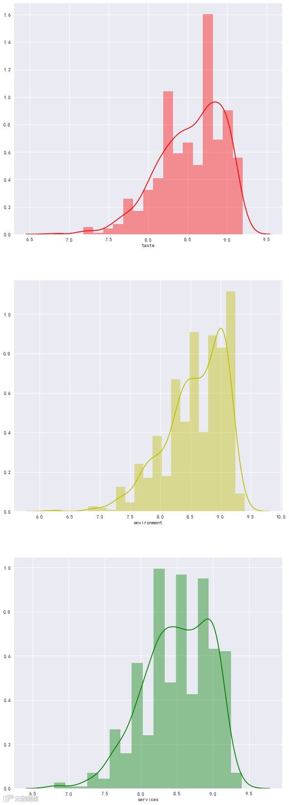 三者得分大多都是集中在8.0-9.2这一阶段,我认为,低于7.5分的饭店还是不要去尝试了。同时,星级评价应该也是由这三者得分产生的。
