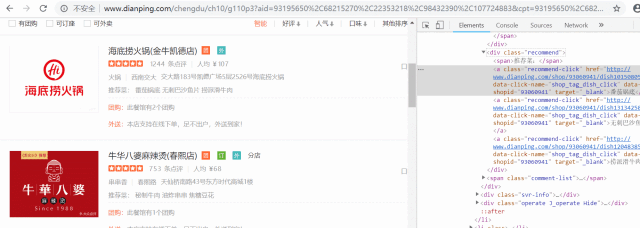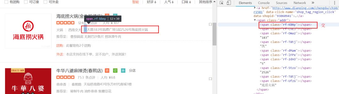 在具体分析的网页的时候,我震惊了,大众点评的反爬做的太过分了,它的数字,一些文字居然都不是明文显示,而是代码,你还不知道怎么分析它。如图: