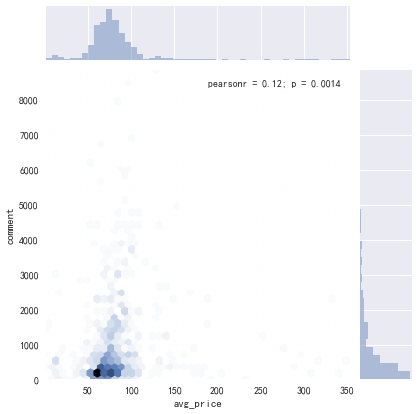 通过比较,发现评论数目低于500,人均在50-100区间是最多的。当然这肯定和评论数量、人均消费本身集中于这一阶段有关。
