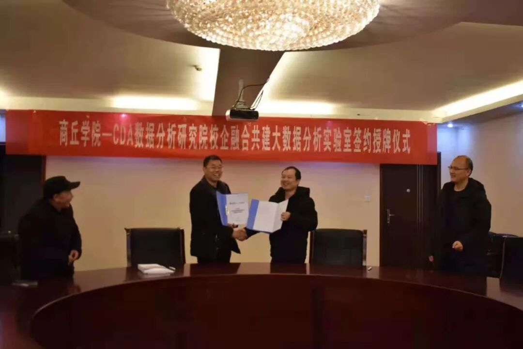为培养高素质大数据分析与应用型人才,提升企业服务地方产业转型升级的能力。12月12日上午,商丘学院副校长单伟龙,商学院院长于世良,副院长袁凯,经济系主任孙双利与CDA数据分析师副总经理刘进,CDA北方区院校事业部总监任重开于商丘学院进行签约授牌仪式。