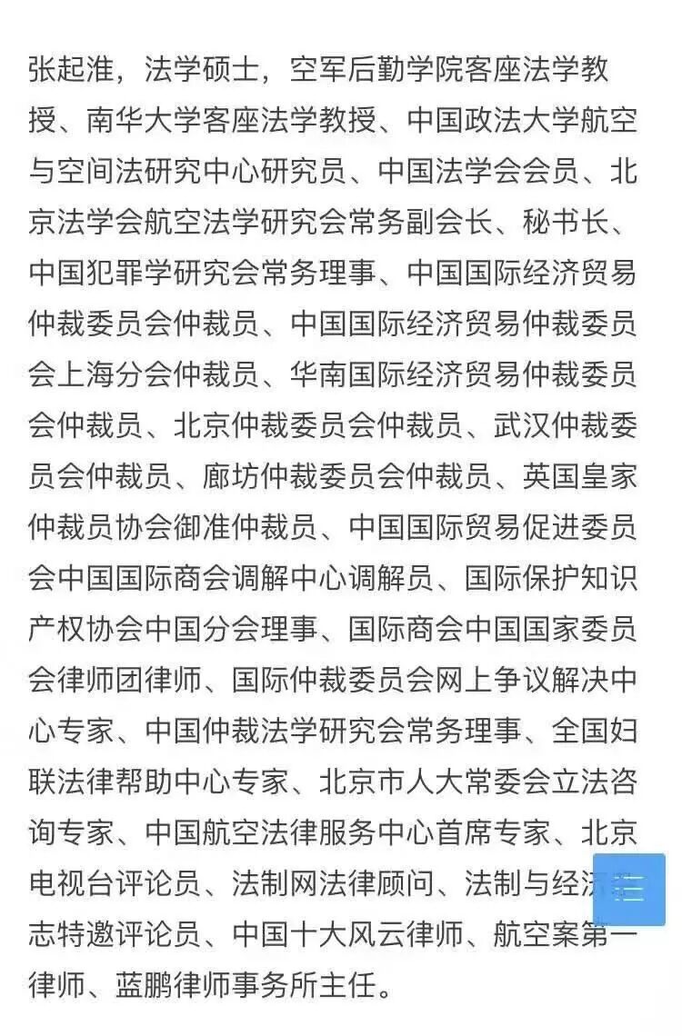 确实如此,重案组探员可以告诉大家,张起淮律师是著名的航空法专家,也打过很多知名的刑事案件,其中李天一案件的二审就是他代理的,还有著名的伊春空难案等。