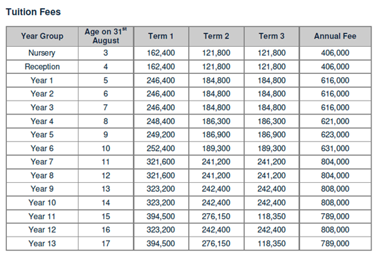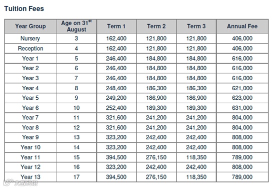 7年级-13年级43.5万泰铢/年