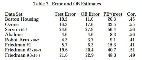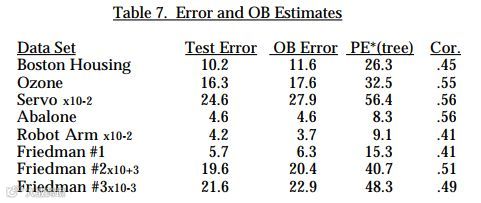 Breiman在随机森林的论文中证明了袋外数据(OOB)误差估计是一种可以取代测试集的误差估计方法,即袋外数据误差是测试数据集误差的无偏估计,因此可以用OOB数据用来检测模型的泛化能力。