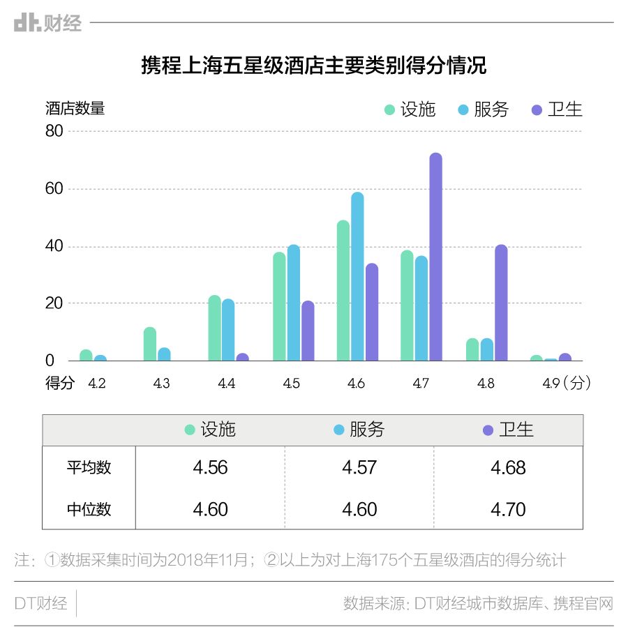 也就是说,在上海,人们对五星级酒店“服务”和“设施”的评价,普遍要低于“卫生”。