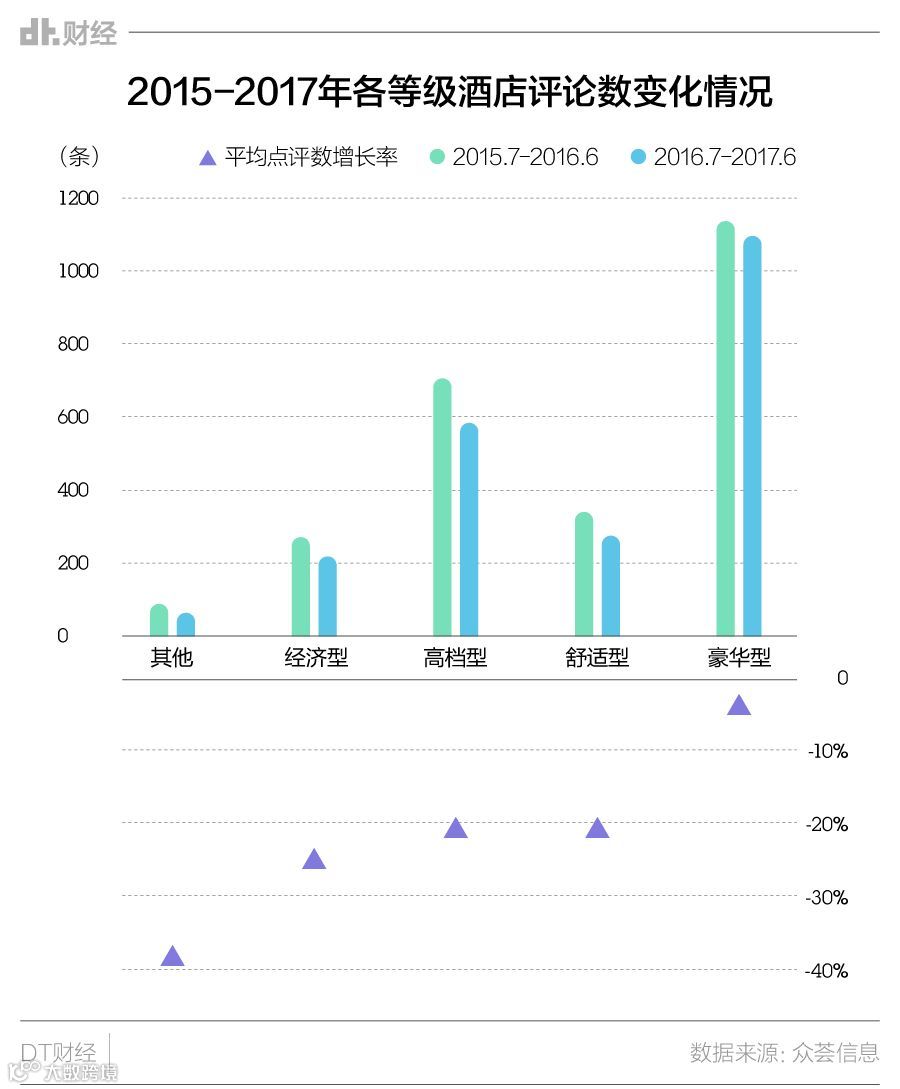 事实上,相对于其他类型酒店的房客,住五星级酒店的人们更愿意分享感受。2018年初,携程发布的《2017年大住宿数据白皮书》引用了众荟信息的数据,数据显示,相对于其他星级的酒店,五星级酒店收到的评论数量更多,尽管2015-2017年间房客们的评论热情有所下降,但五星级酒店评论数下降幅度最小。