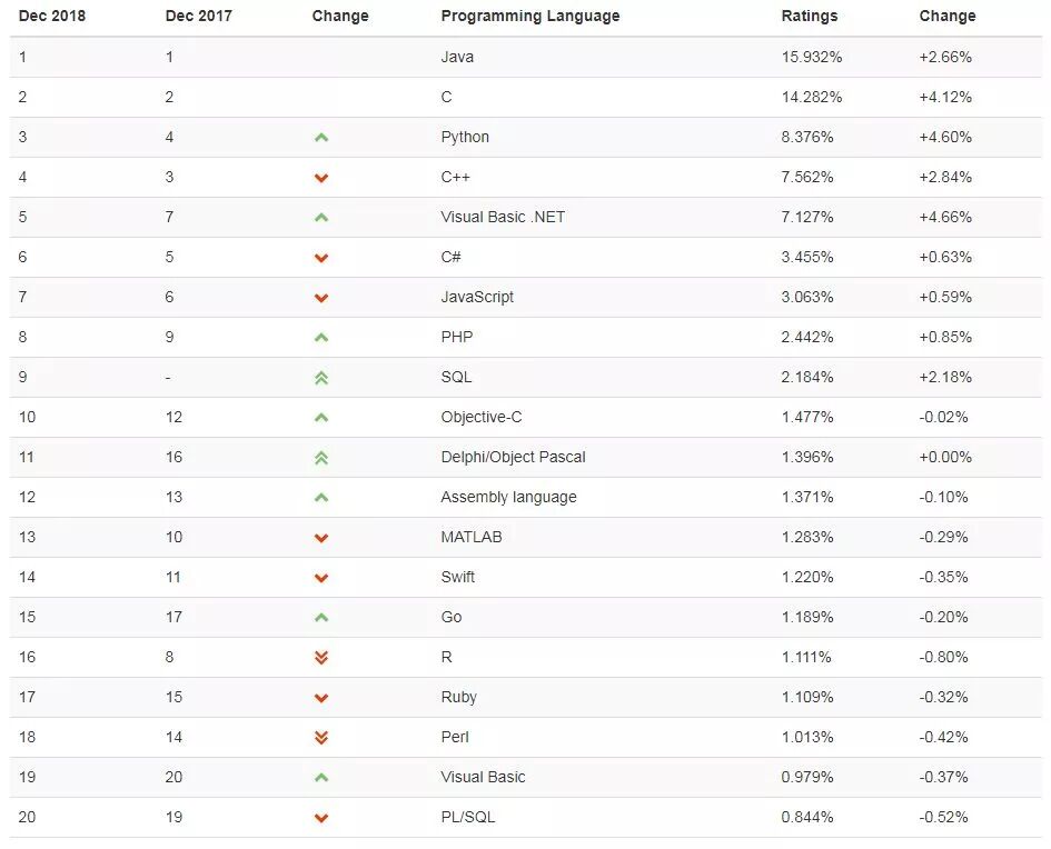 接下来看一下 12 月的编程语言排行榜 TOP 20: