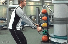 非常简单的动作,将普通的深蹲和拉线结合在一起。先把钢线放在一个较低的位置,手握住把柄,然后双腿下蹲,膝盖呈90°。当身子回到初始位置时,往后拉钢线。(这个动作对身体抗倾斜能力有帮助)