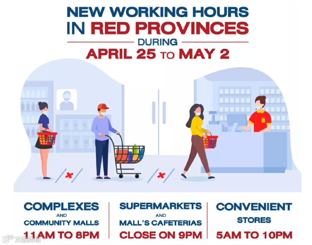 泰国零售商协会周六宣布,从4月25日至5月2日,购物中心和社区购物中心将于4月25日至5月2日上午11点至晚上8点开放。超市和自助餐厅将在晚上9点关闭,而便利店将在早上5点至晚上10点开放。该指令覆盖的省份包括曼谷,清迈,春武里,北榄,巴蜀,龙仔厝,巴吞他尼,那空佛统,普吉岛,那空叻差,暖武里,宋卡,达府,乌隆他尼,素攀武里,沙缴,罗勇府和孔敬府。该指令在5月2日到期后视疫情控制情况再做调整。