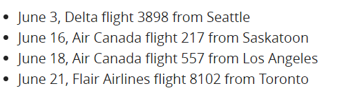 6月16日,从萨斯卡通(Saskatoon)出发的加拿大航空217航班;