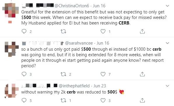 然而,仅收到$500加元CERB救助金的人不在少数!很多网友在Twitter上询问:“为什么这周的钱少了这么多,是不是哪里出问题了?”