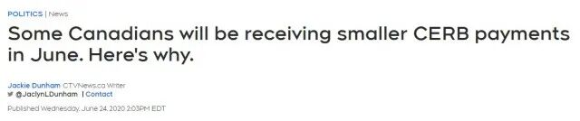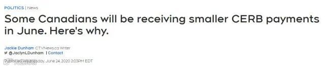 据英文媒体CTV News 6月24日报道,家住渥太华的Erin O’Brien表示,她收到了一封来自政府的邮件,上面通知她“下周将不会受到CERB的付款”。此外,这封邮件还解释道,之所以会在6月收到较小的金额,是因为她在4月份时已经收到了一笔金额为$2000加元的预付款。