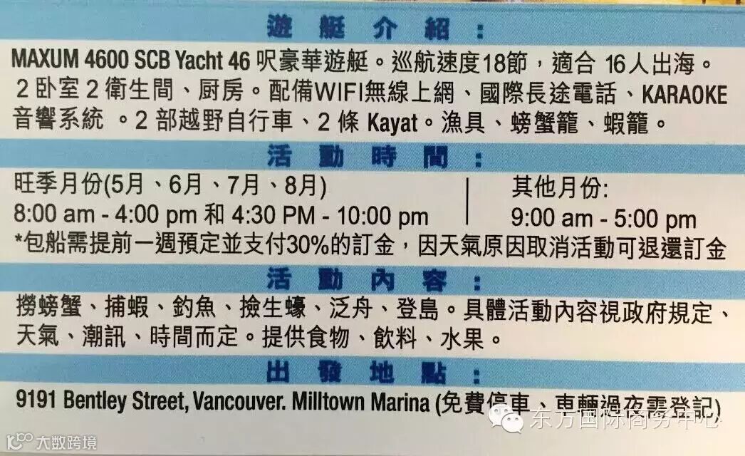 预付:20%定金, 建议包船