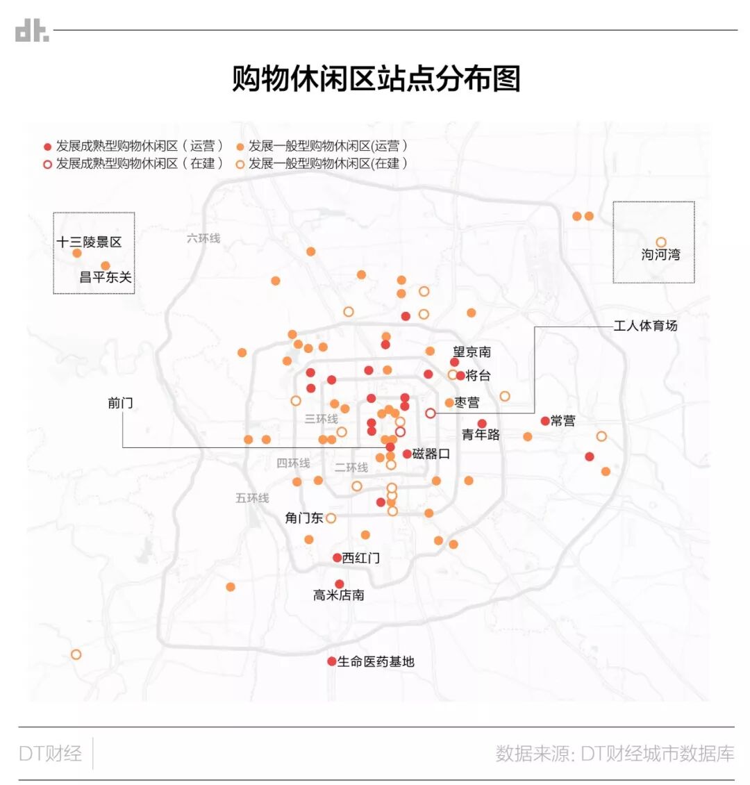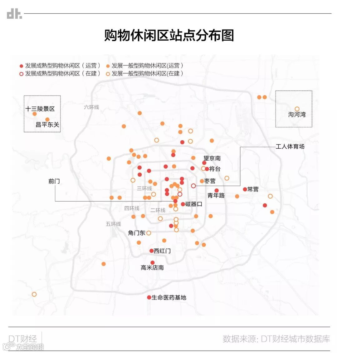 除此之外,《报告》还发现距离城市中心稍远的大兴区、通州区和丰台区也出现了发展成熟型购物休闲区站点。南城四环内区域购物休闲业态发展薄弱,四环以内发展成熟型购物休闲区只有前门站、磁器口站和角门东站。