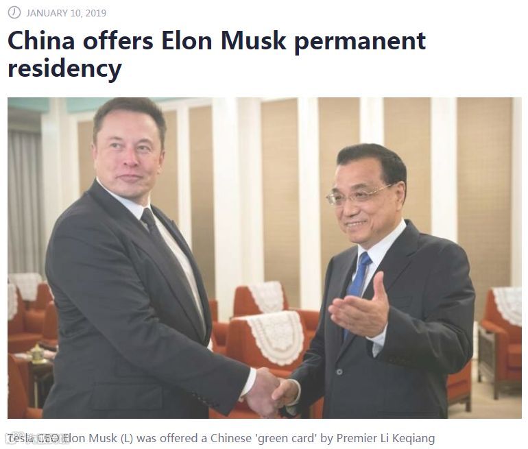 伊隆·马斯克——特斯拉汽车公司、SpaceX太空探险公司、OpenAI非营利人工智能技术公司的创始人,获得绿卡一事也得到了外文媒体的报导。