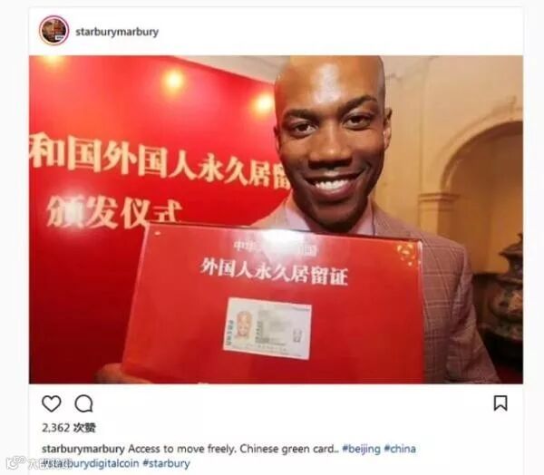 而NBA传奇球星马布里就显得更加高调了,直接在ins上po出了他拿到中国绿卡的照片,引得球迷一阵尖叫。