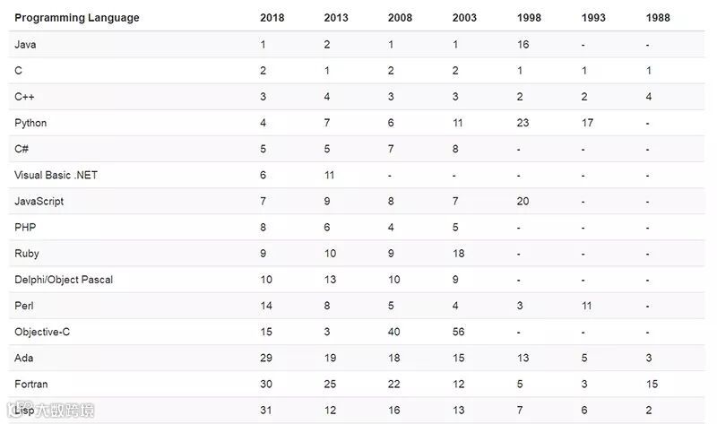 同时,机器学习不仅影响了 Python 的发展,还有随它兴起的 Julia 语言,这个拥有 C 的速度、Ruby 的灵活、Python 的开发效率的编程语言,一路狂奔,从 #50 晋升到 #39。