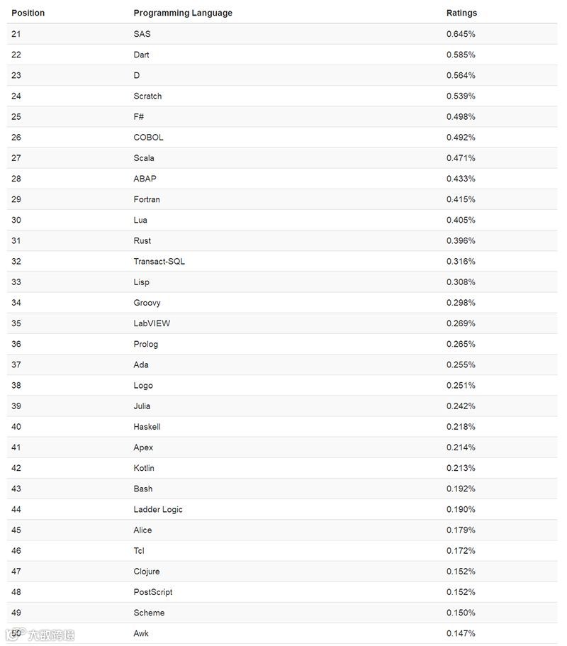 本月 TIOBE 指数中其他编程语言还有一些变化: