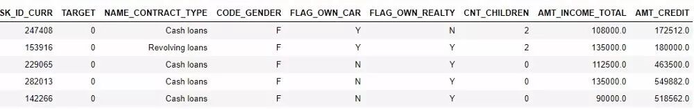 为了进行演示,我们将使用来自 Kaggle「家庭信用违约风险」机器学习竞赛的一个数据样本。了解该竞赛可参阅:https://towardsdatascience.com/machine-learning-kaggle-competition-part-one-getting-started-32fb9ff47426,完整数据集可在这里下载:https://www.kaggle.com/c/home-credit-default-risk/data。这里我们将使用部分数据样本来进行演示。