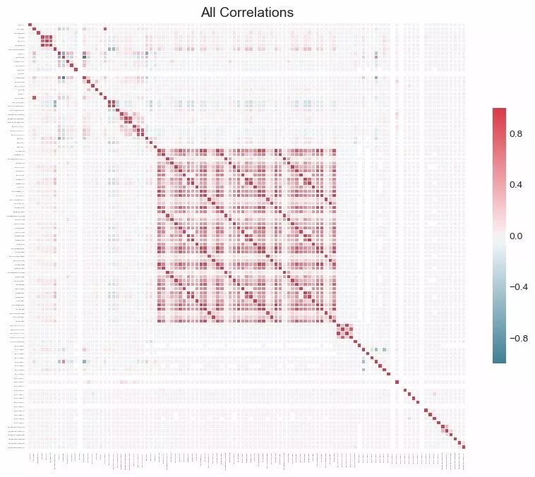 如果我们想全面了解数据集,我们还可以通过将 plot_all = True 传入该调用,绘制出数据中所有相关性的图表: