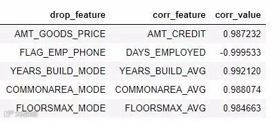 和之前一样,我们可以访问将会被移除的整个相关特征列表,或者在一个 dataframe 中查看高度相关的特征对。
