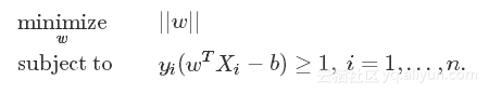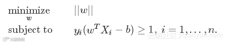 支持向量机(SVM)训练算法找到由超平面的法向量w和偏差b表示的分类器。 这个超平面(边界)将不同的类分隔开尽可能大的边距。 该问题可以转化为约束优化问题: