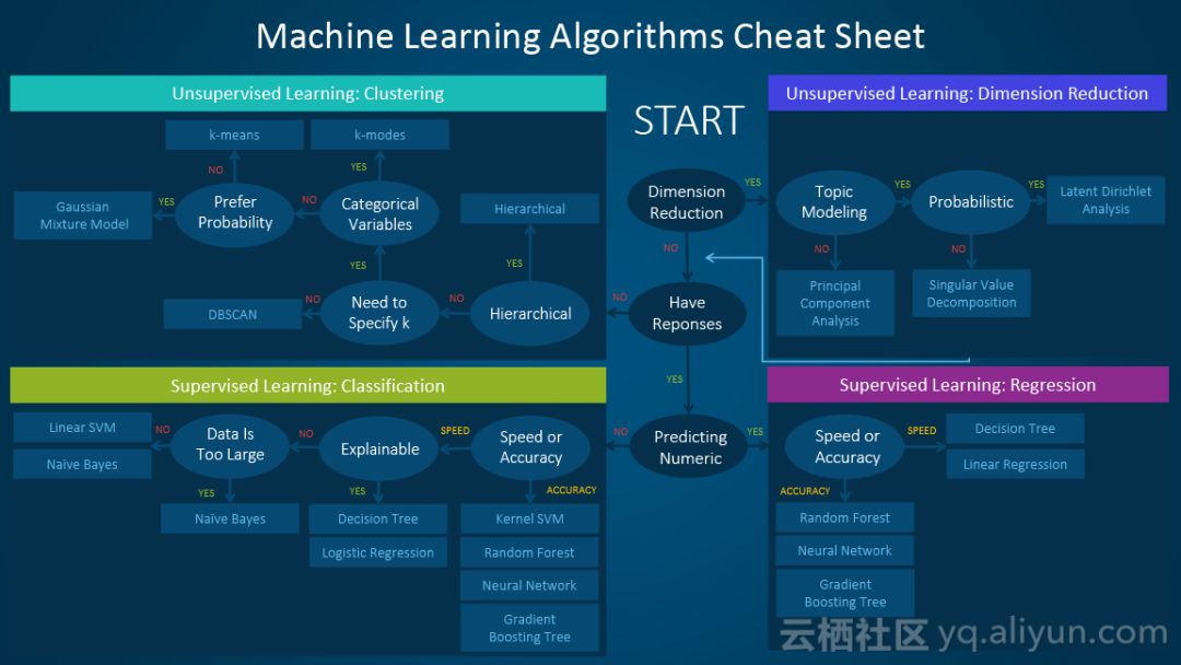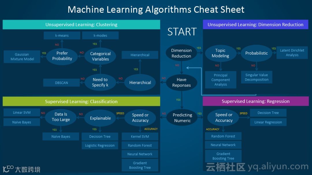 机器学习算法速查表帮助你从各种机器学习算法中选择,以找到适合你的具体问题的算法。 本文将引导你完成如何使用速查表的过程。