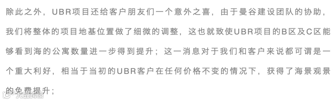 UBR的调整,海景数量增多