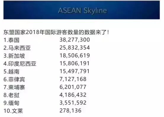 此外,泰国是东南亚最受欢迎的旅游目的地之一。根据数据,2018年到访泰国的游客突破3800万人次,其中中国游客的数量再次蝉联冠军,数量为1060万人次。