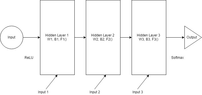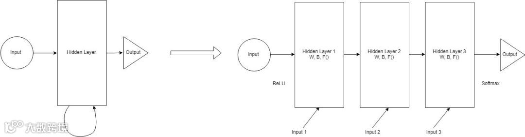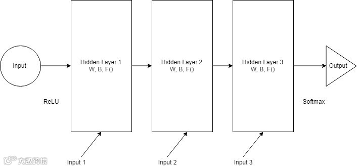 如果在上述示例中的层数增加了,输入层也接收输入。那么第一个隐藏层将激活传递到下一个隐藏层上,依此类推。最后到达输出层。每一个隐藏层都有自己的权重和偏置项。现在问题变成了我们可以输入到隐藏层吗?