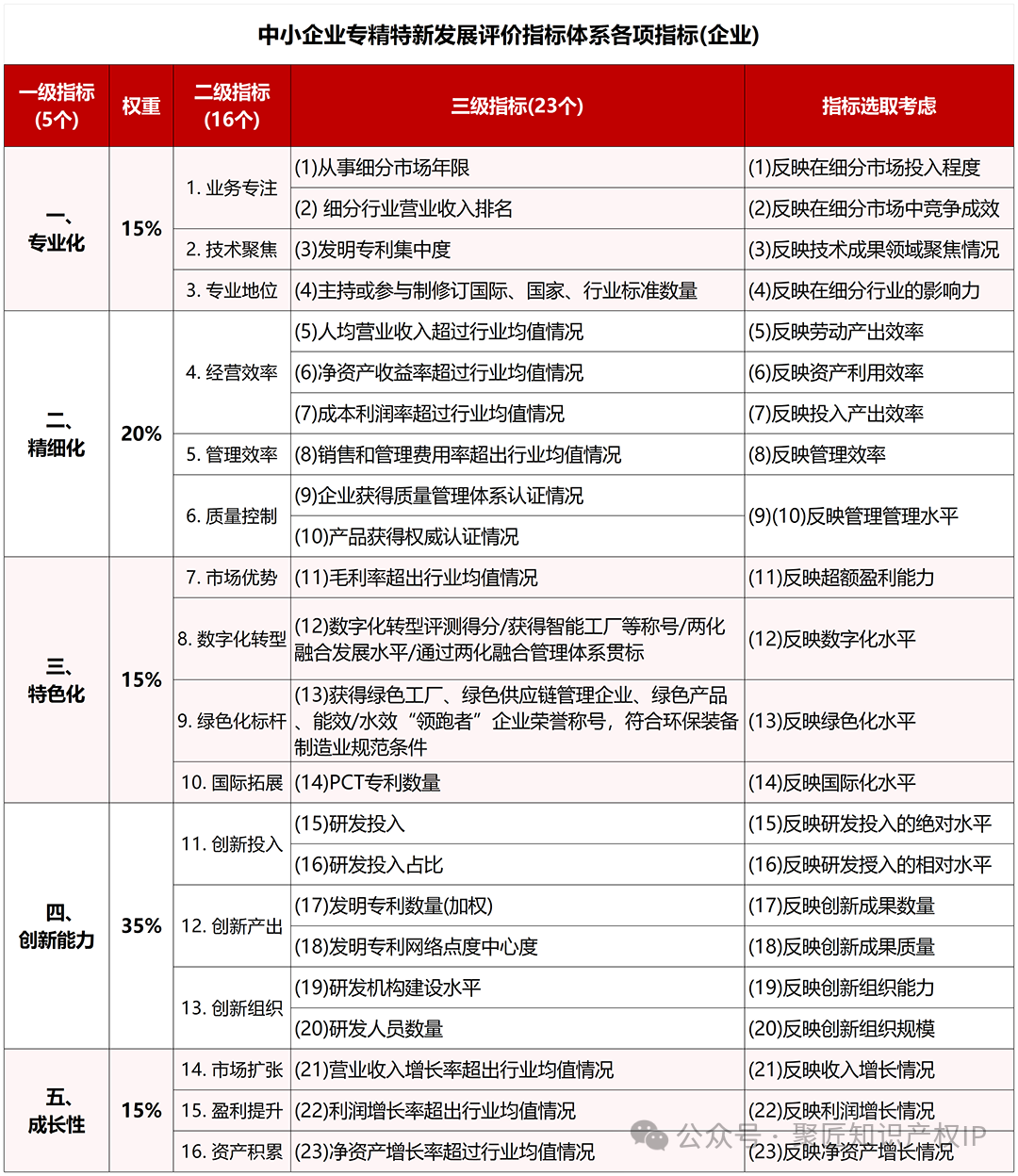 此前工信部颁布的《中小企业专精特新发展评价指标体系(试行)》就明确了五大发展指标及其权重。后续将继续优化完善专精特新认定标准修订,预计将实现质的有效提升与量的合理增长。