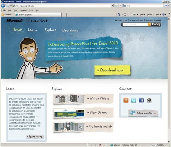 这是当年 PowerPivot 的官方网站,但现在已经不存在了,微软将 PowerPivot 作为了Excel的内置功能,并在专业增强版提供出来。