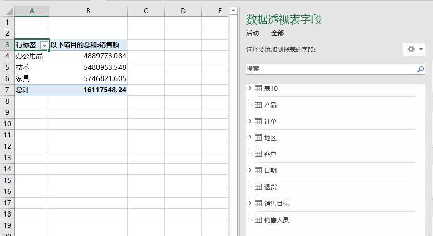 我们选择产品的类别和订单销售额来进行分析,如下:
