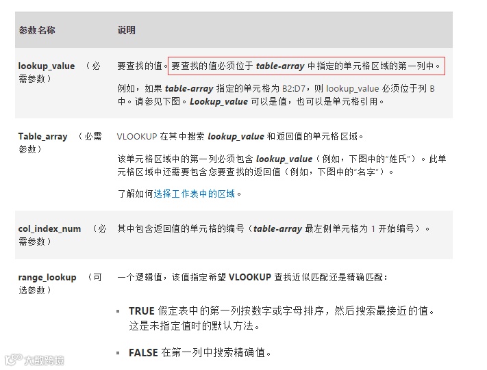 要查找的值必须位于 table-array 中指定的单元格区域的第一列中。