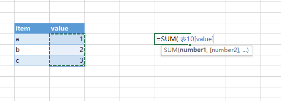 Excel中的表的好处在于,在进行计算的时候,可以引用的是业务逻辑名称,而不再是无意义的编码区域了,例如: