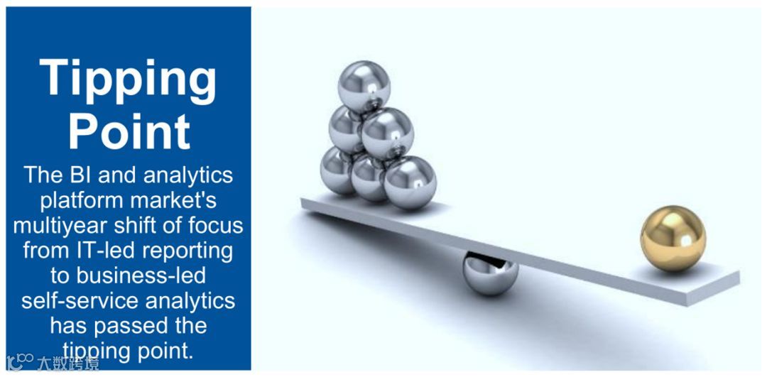 商务智能与分析平台经过多年发展演化,已经从IT导向的报表模式不可逆转地转向到了业务导向的自助分析模式,也就是说:拐点已过。