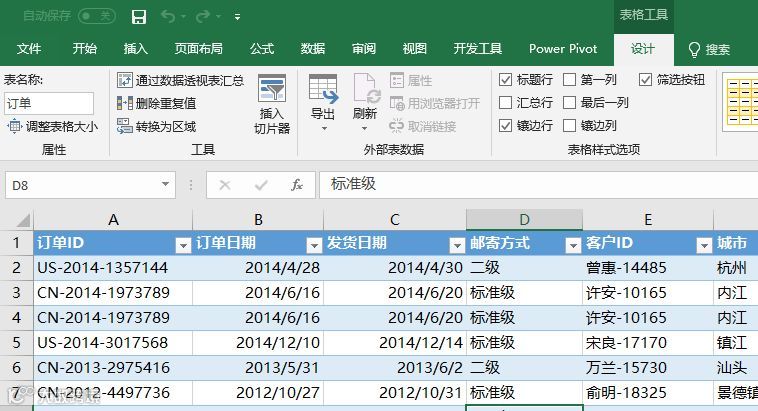 大部分人只用过第一个方式的区域形式,其实透视表可以基于表来创建,正如这里的订单,其实是一个表。
