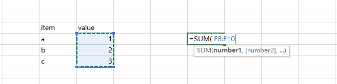 这里即将写出类似:SUM(A1:B5) 之类的公式来实现计算。