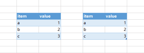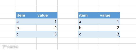 理解Excel中的表的伙伴应该能一眼认出右边才是Excel中的表,左边仅仅是样子和右边一样的平面区域数据而已。