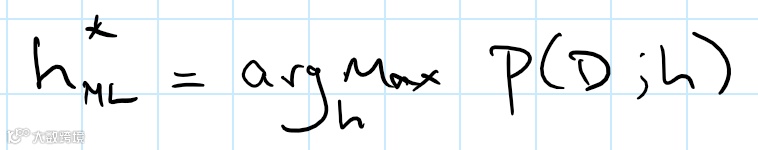一种方法是找到能最大化观测数据的似然函数(即 P(D;h))的参数 h 的值。在这里,我们用「;」来表示 h 是一个关于概率分布 P 的参数,意味着参数 h 定义了分布 P,但是分布 P 只是说明了观测数据 D 成立的可能性有多大。
