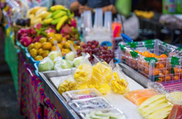泰国地处热带,路边摊自然有各种美味水果售卖,从芒果到菠萝到木瓜,每一种都超美味又不贵,按你喜欢的来买吧!