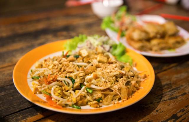 泰式炒粉一定是街头最精髓的小吃之一,越路边摊的地方做出来的越美味!酸甜的调料加上多多的豆芽和豆干,炒粉软韧,花生碎酥香,蔬菜清爽,一碗就过瘾。