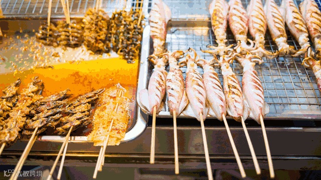 这种烤串个头小小,肉切成薄片,涂上甜甜的酱汁拿去烤到微微焦,肉质格外弹嫩,甜蜜蜜的特别好吃。