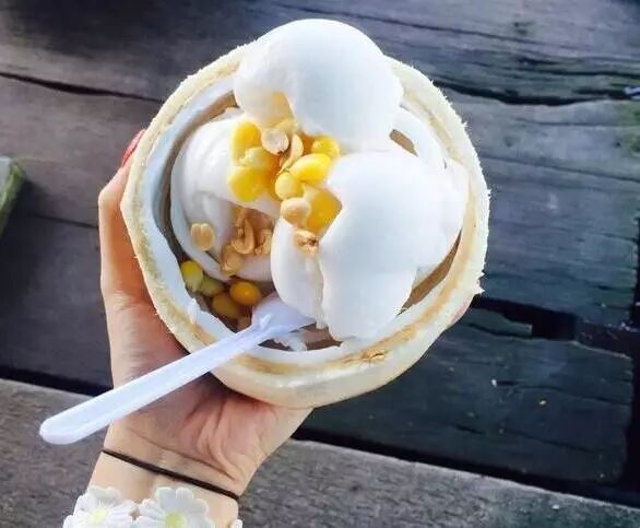 不光是鲜果好吃,做出甜点也超级美味,椰子冰激凌尝起来嫩滑香甜不腻人,不管是大商场里还是路边小摊都有售卖。