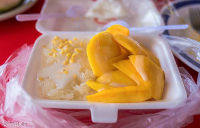 煮得软黏热腾腾的糯米饭加上现切的水嫩芒果,淋上一层微咸的椰浆,便成了这一道热带独有的甜品~