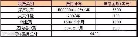 有人说,美国买房容易养房难。在美国置业每年的持有成本到底是多少?以加州一套50万美元的典型独立屋为例,计算每年的养房成本如下: