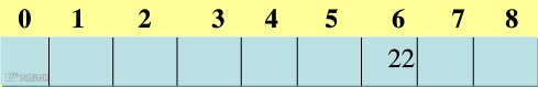 解:取22,计算H(22)=22 mod 8 =6,该地址为空,可用: