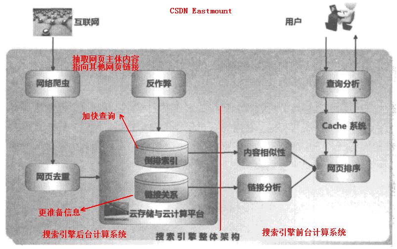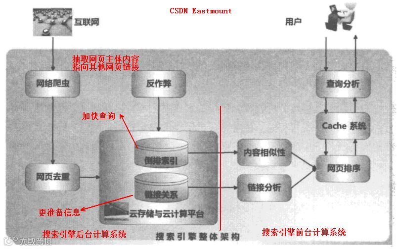 简述阿里搜索技术:HBase集群、搜索引擎、资源动态管理、大规模个性化搜索、意图预测、阿里知识图谱(用户/商品多维关系和特色标签用于搜索推荐)、个性化搜索(建立用户Profile、兴趣图谱、关系存储)、文本挖掘技术(分词系统、语义分析、特色标签分析和挖掘)、最大CDN系统、数据库系统、阿里云、淘宝文件系统TFS、Tair、LVS负载均衡等