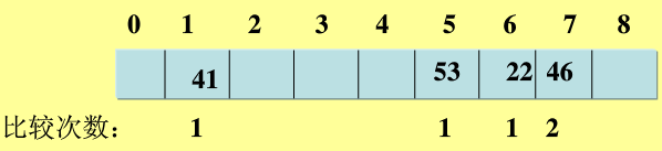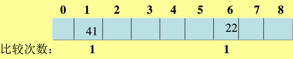 取41,计算H(41)=41 mod 8=1,该地址为空,可用: