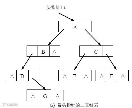可采用顺序存储,如 |1|2|3|...|0|8|9| 其中0表示该结点不存在,也可采用链式存储,如下图所示: